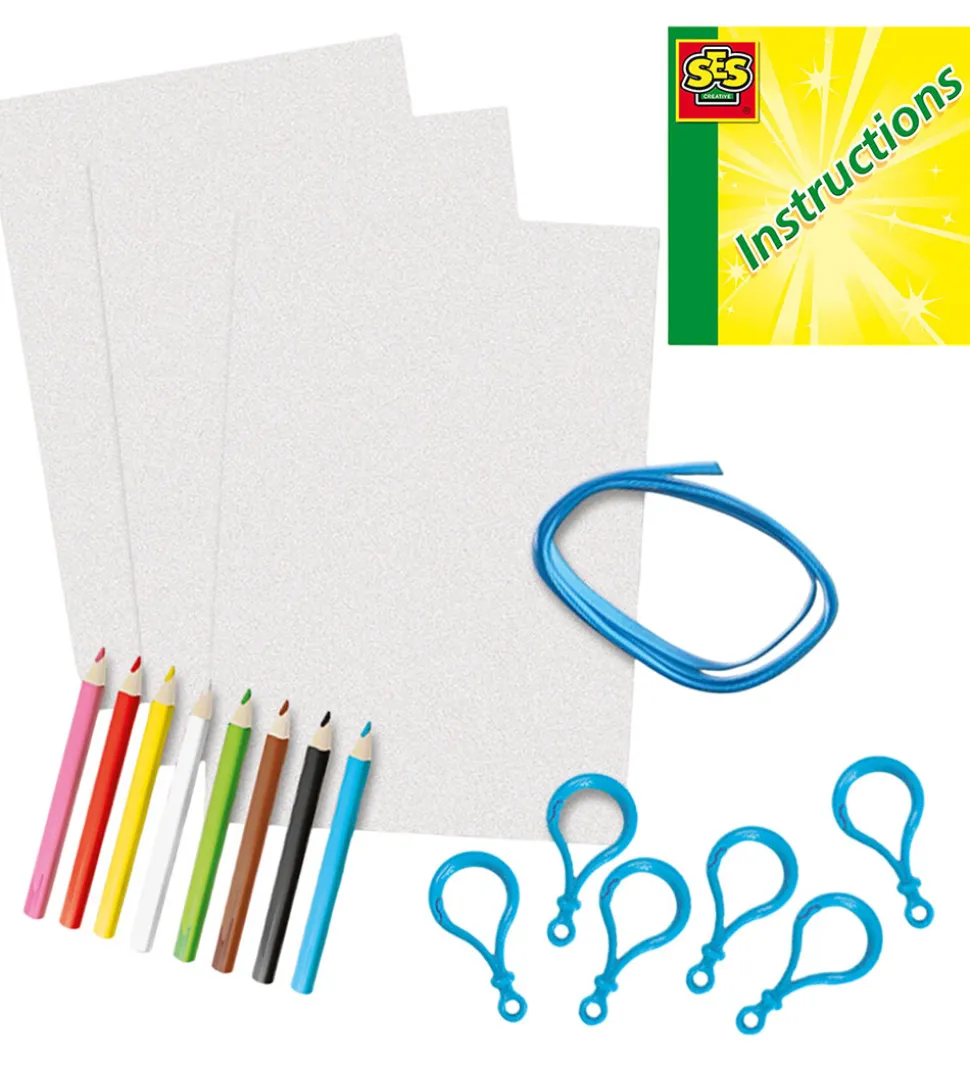 Spændende SES Creative kreasæt med krympeplast til at skabe sine egne nøgleringe. Kreasættet indeholder følgende: