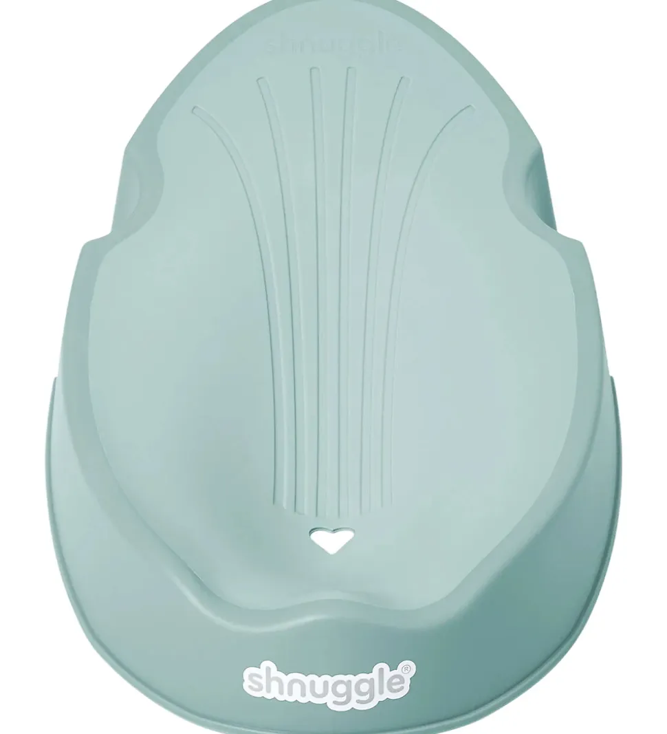 Fin Shnuggle badestøtte i en støvet, grøn nuance med et ergonomisk design.