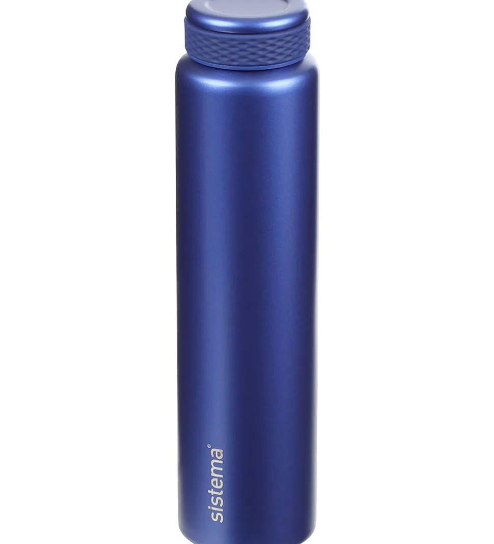 Flot Sistema termoflaske i blåt, rustfrit stål, som kan indeholde op til 280 ml.