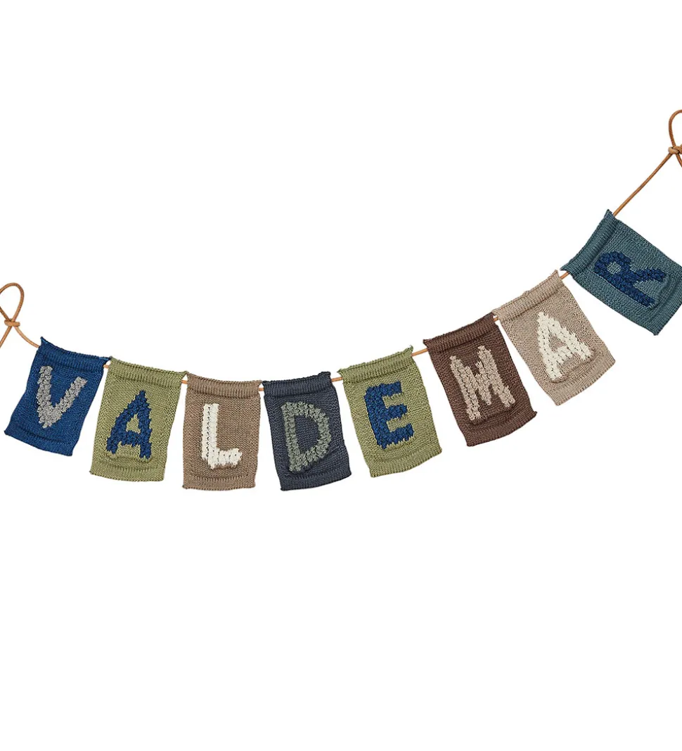 Fin Smallstuff bogstav i blå med en strikket struktur og bogstavet “R” i klar blå. Med Smallstuff bogstavet kan du kombinere bogstaver og motiver og danne en sød flagranke med barnets navn.