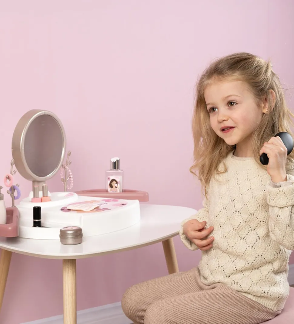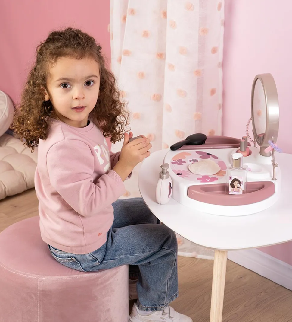 Elegant Smoby sminkesæt i hvide og rosa nuancer.