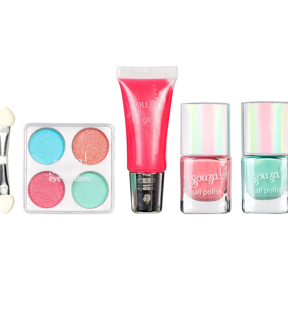 Souza neglelakkerne er lavet specielt til børn, da de er vandbaserede og derved er lette at fjerne. Lipglossen er med smag af passionsfrugt og der medfølger en lille børste, til at påføre øjenskyggen.