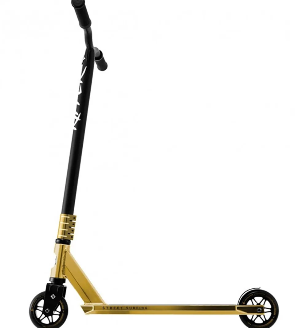 Sejt Streetsurfing løbehjul i sort og med guldfarvede detaljer.