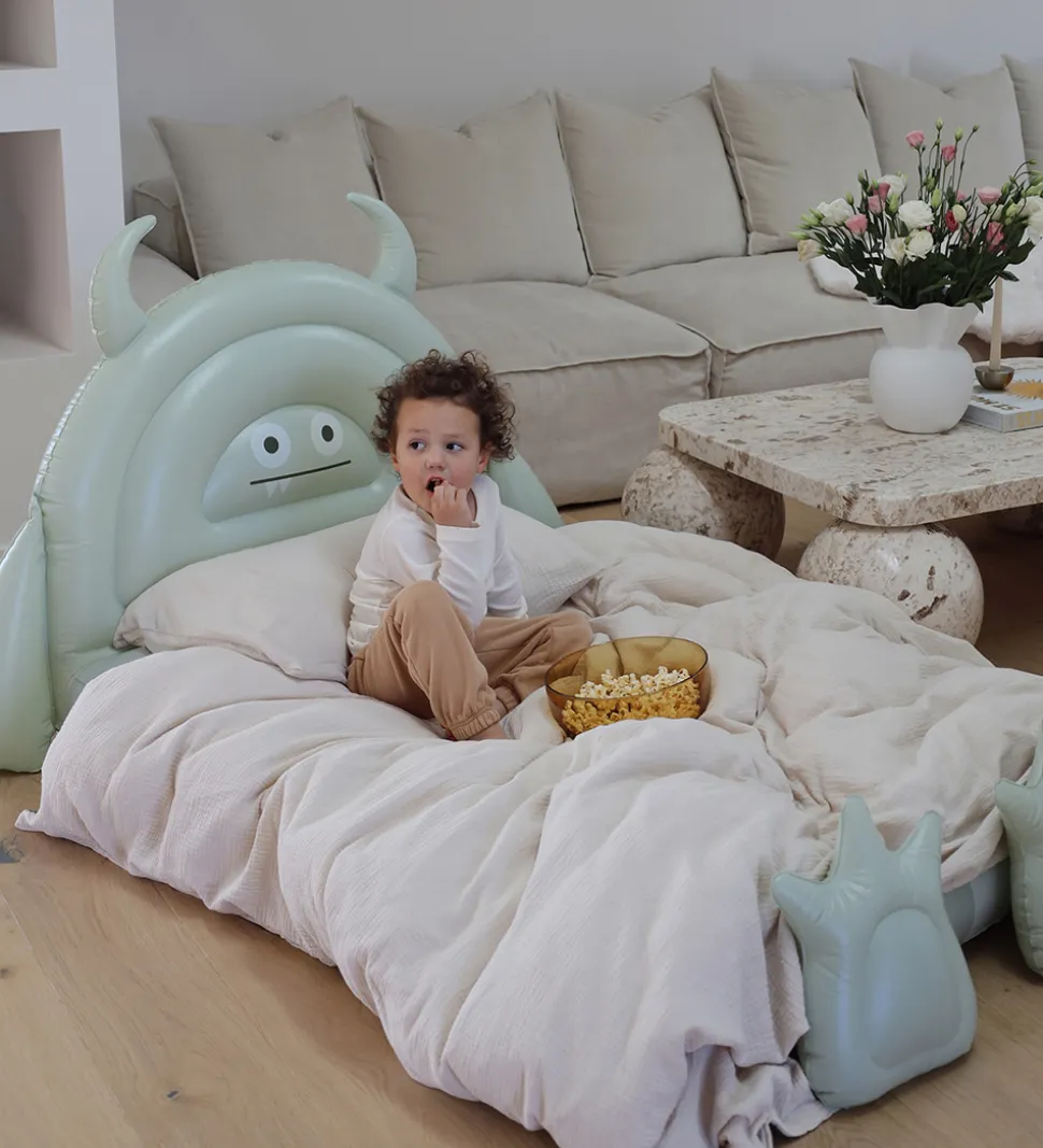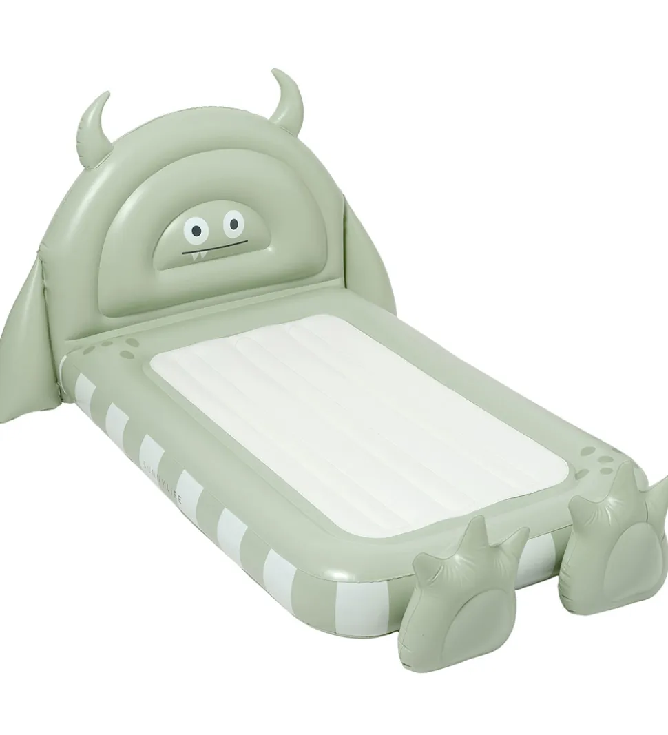 Sej SunnyLife børneseng med form som et monster i støvet grøn.
