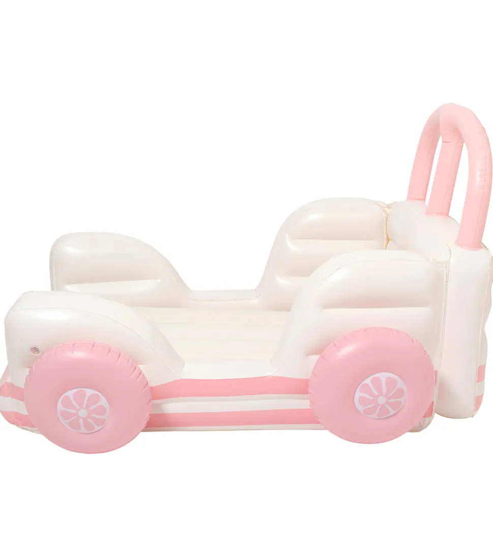 Sej SunnyLife børneseng med form som en bil i rosa og hvid.