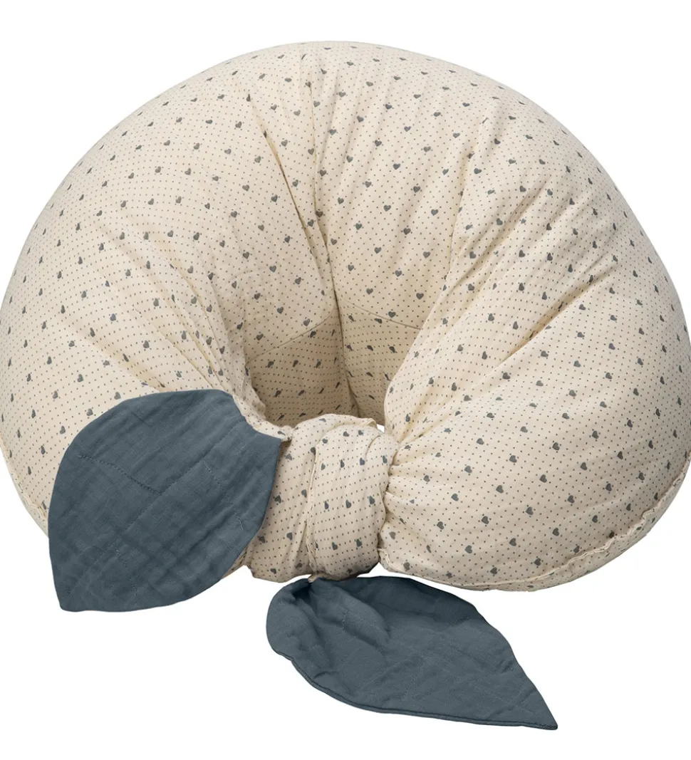 That’s Mine ammepuden er i blødt musselin og formet som en halvmåne, som giver en god støtte både under graviditeten og til den efterfølgende amning. Ammepuden har et langt og praktisk design, som gør det muligt at amme tvillinger. I hver ende af ammepuden er der påsat et lille blad, som fungerer som en nusseklud.