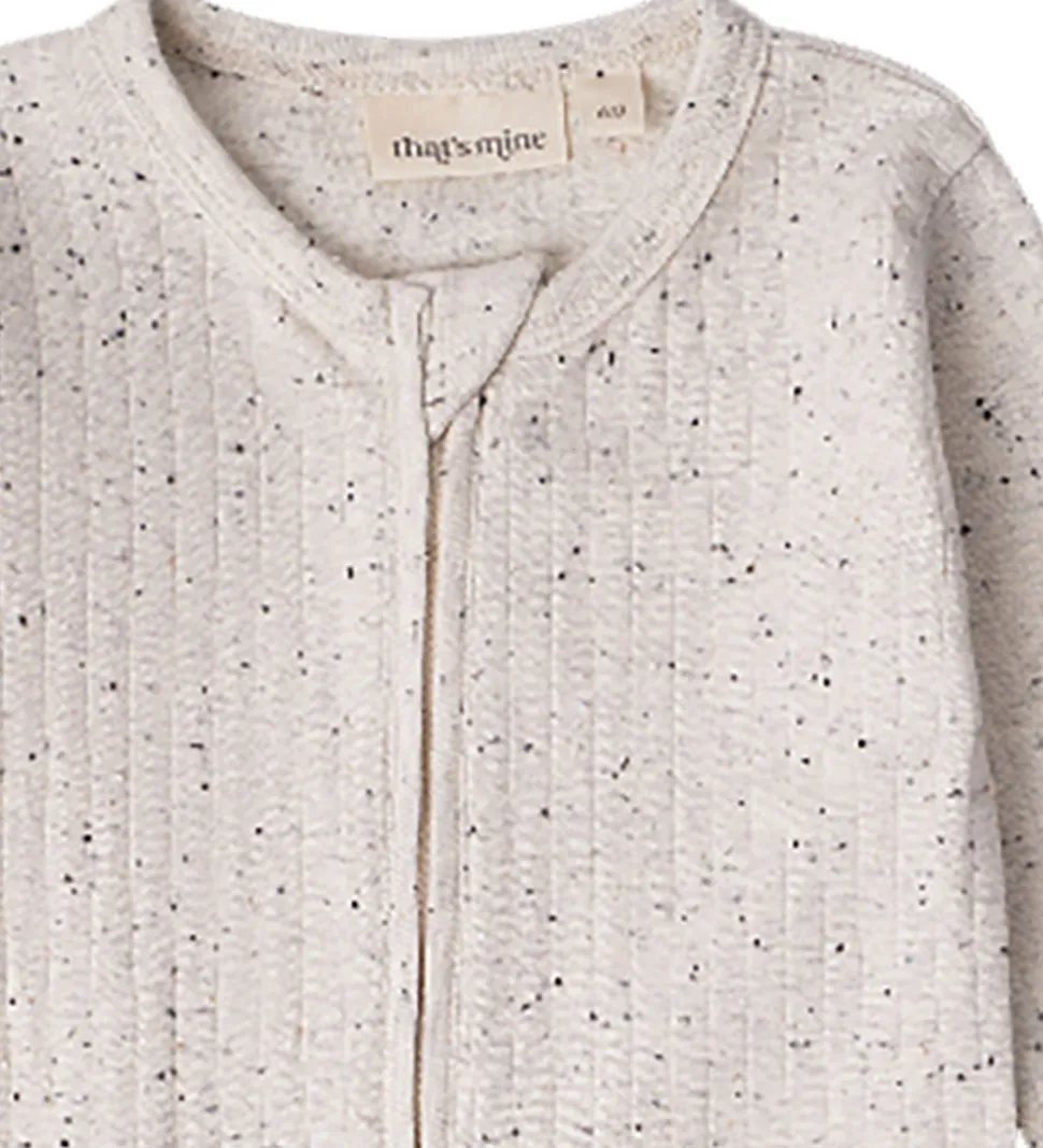 Elegant heldragt fra Thats Mine i meleret, lysebeige nuance med diskrete, sorte prikker, der skaber et enkelt og stilrent udtryk.
