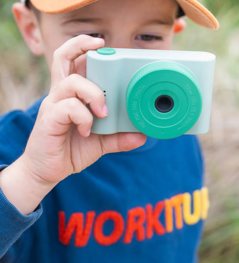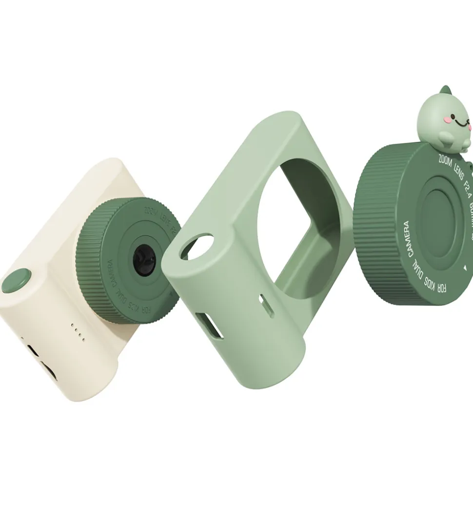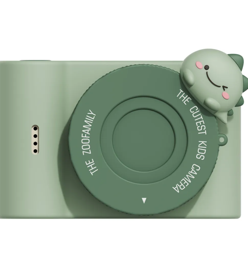 Sjovt The Zoofamily kamera i et grønt dinodesign fra Urban Zoo-serien. Der medfølger et klistermærke-ark, så kameraet kan dekoreres i en personlig stil.