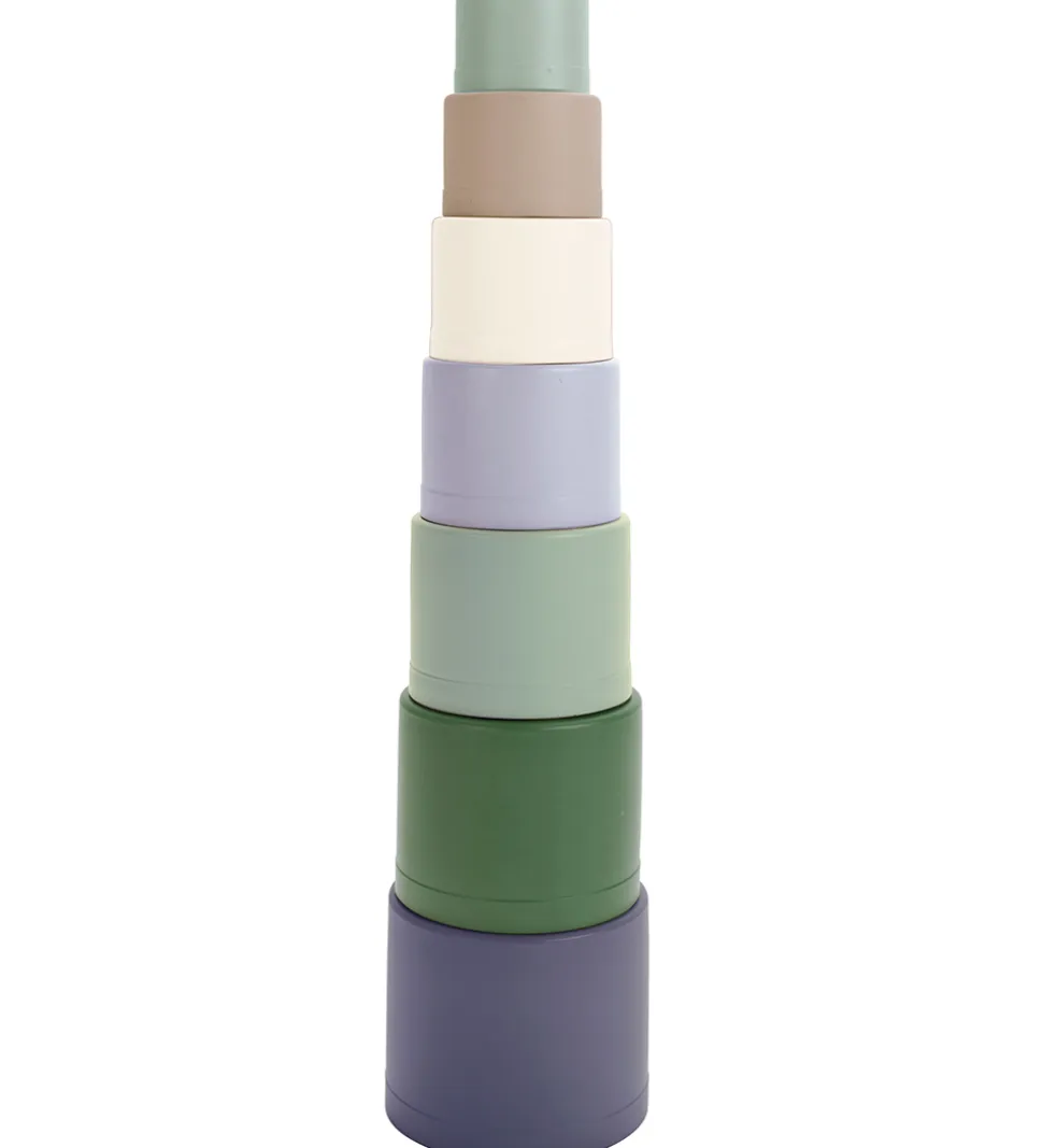 Flot Tiny by Dantoy stablebægre-sæt med 7 forskellige bægre i rolige, afdæmpede nuancer.