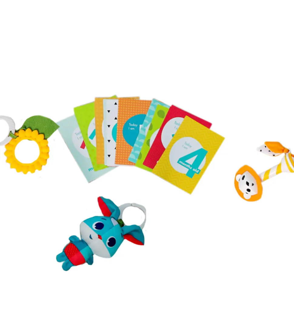 Fint Tiny Love gaveæske med babylegetøj i klare farver. Gaveæske indeholder: