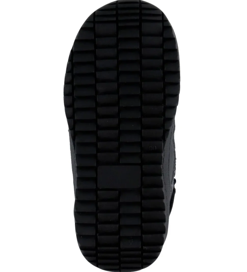 Tommy Hilfiger vinterstøvlerne har et mellemhøjt skaft med en praktisk strop bagpå. De lukkes på indersiden med en lynlås og strammes foran med snørebånd. Vinterstøvlerne har fast hæl- og tåkappe, og indvendigt er der sort fleecefor, imiteret uld og udtagelige indersåler. Ydersålerne er letvægtige og har et groft skridmønster under bunden, som sikrer et stabilt fodfæste.