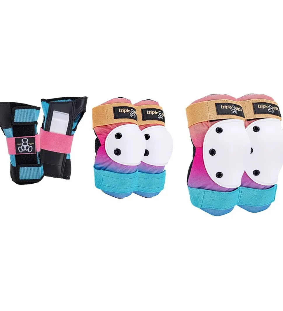 Triple Eight beskyttelsessættet beskytter de udsatte områder på barnet, når de er ude at stå på rulleskøjter, løbehjul, skateboard eller køre på løbecykel. Beskyttelsessættet forhindrer ikke nødvendigvis skader, med det afdæmper de slag, som barnets krop kan få, hvis de falder.