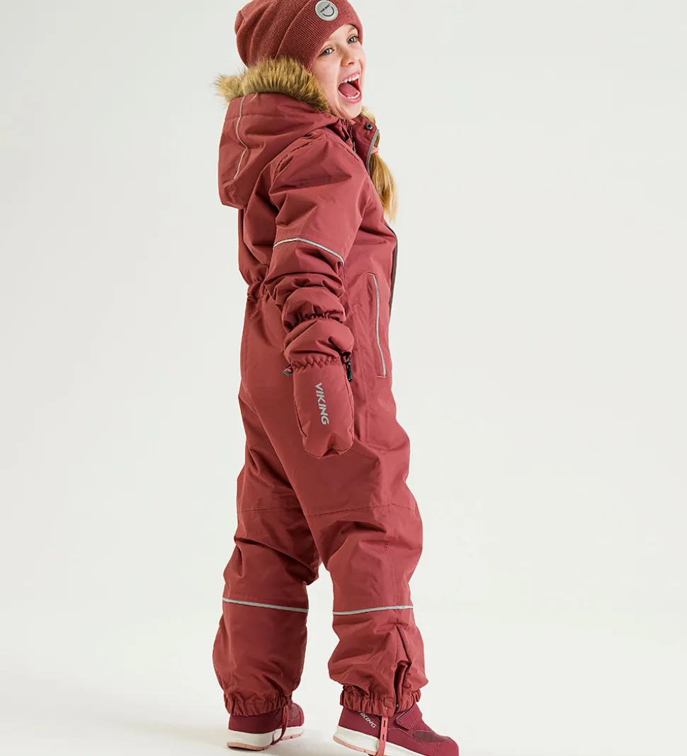 Fin Viking flyverdragt i mørk pink. Flyverdragten har flere refleksdetaljer, heriblandt en rund logorefleks på venstre bryst og ryggen samt reflekspipings flere steder.