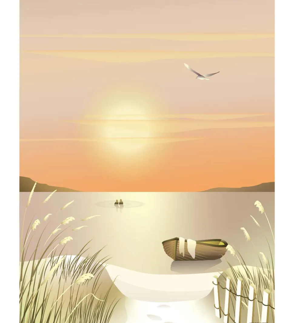 Skøn Vissevasse plakat med et motiv af en solnedgang ved over havet ved stranden.