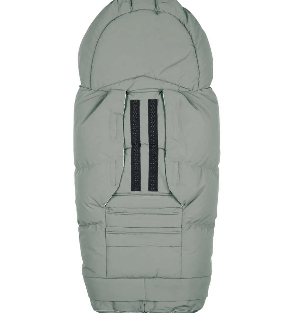 I ryggen er der åbninger til en barnevognssele, og hullerne er dækket af flapper, der beskytter mod kulde. På ryggen er der desuden striber af silikone, som sikrer, at køreposen ikke skrider i klapvognen.