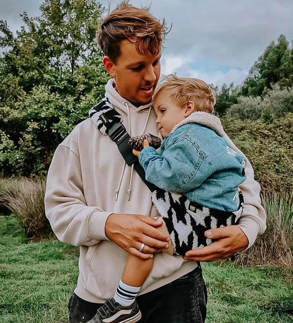 Smart Wildride bæresele med et flot mønster i sort og hvid i teddyfleece.