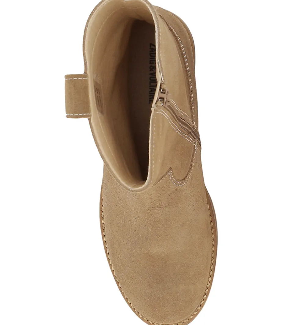 Smarte Zadig & Voltaire støvler i lysebrunt ruskind og med flotte, hvide syningsdetaljer.