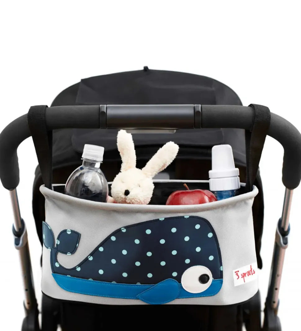 Smart 3 Sprouts barnevognstaske i grå med et stort motiv af en blå, prikket hval.