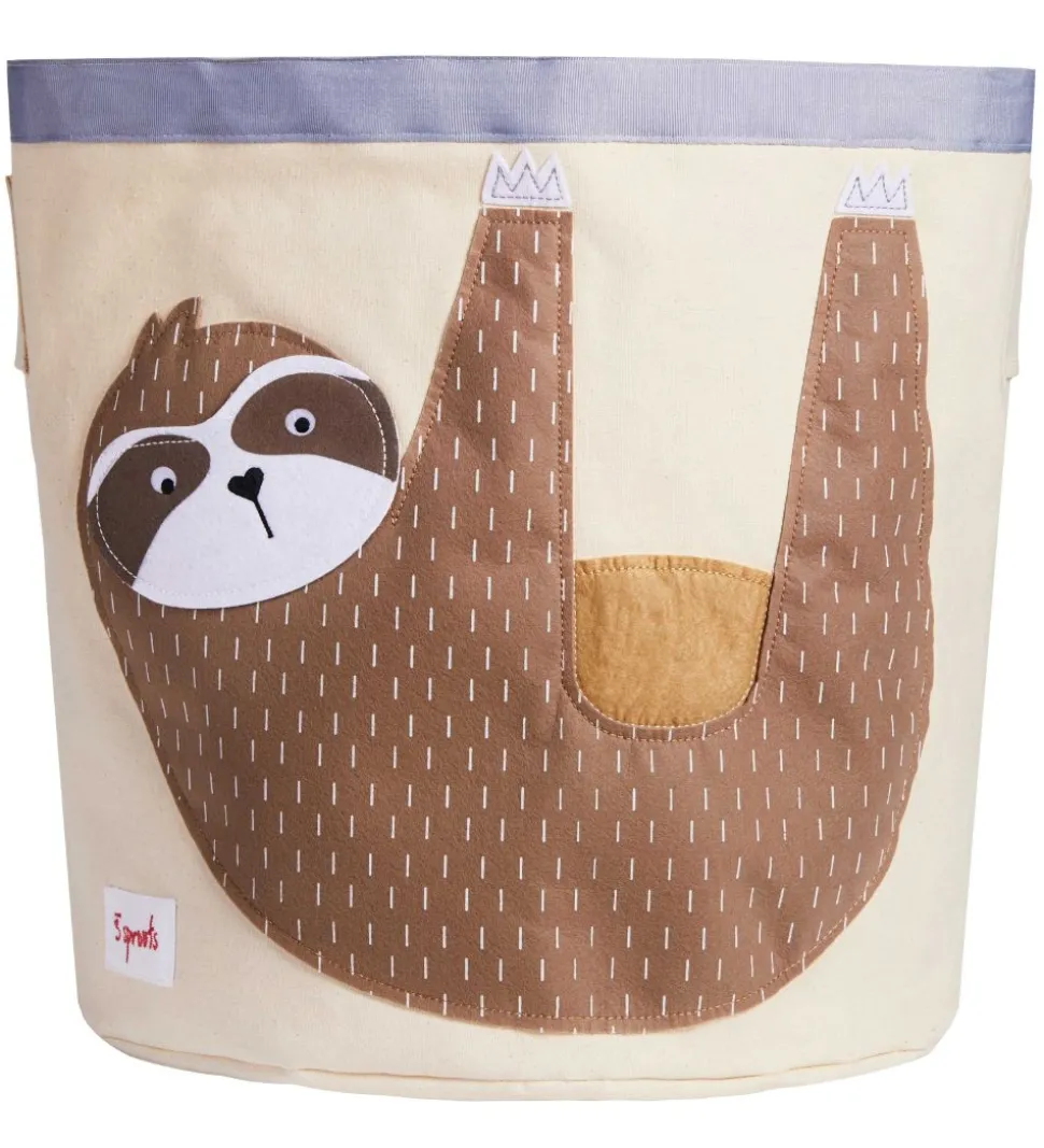 Fin 3 Sprouts opbevaringspose med et stort motiv af et dovendyr i brun.