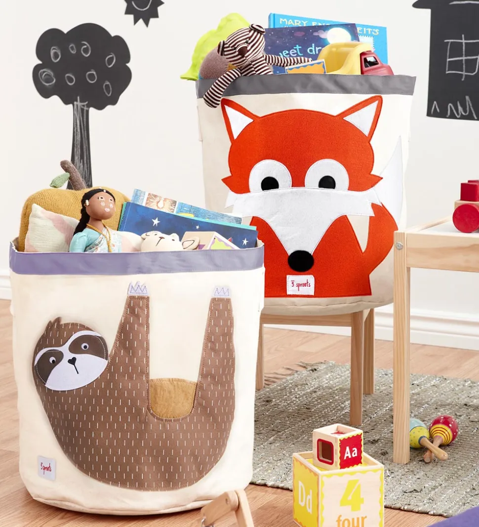 3 Sprouts opbevaringsposen har en rund facon med en stabil bund, og den egner sig perfekt til opbevaring af legetøj, bøger eller vasketøj. Posen er nem at folde sammen igen, hvis den ikke er i brug.