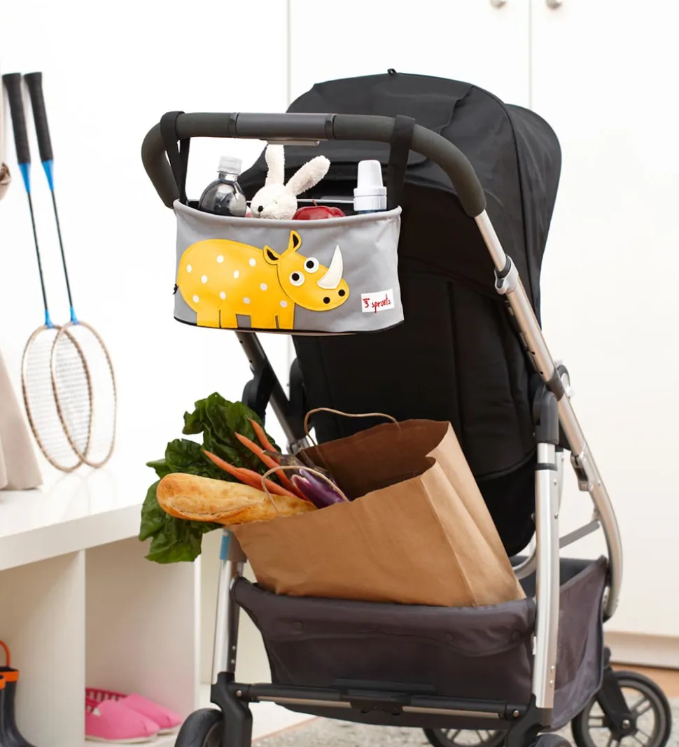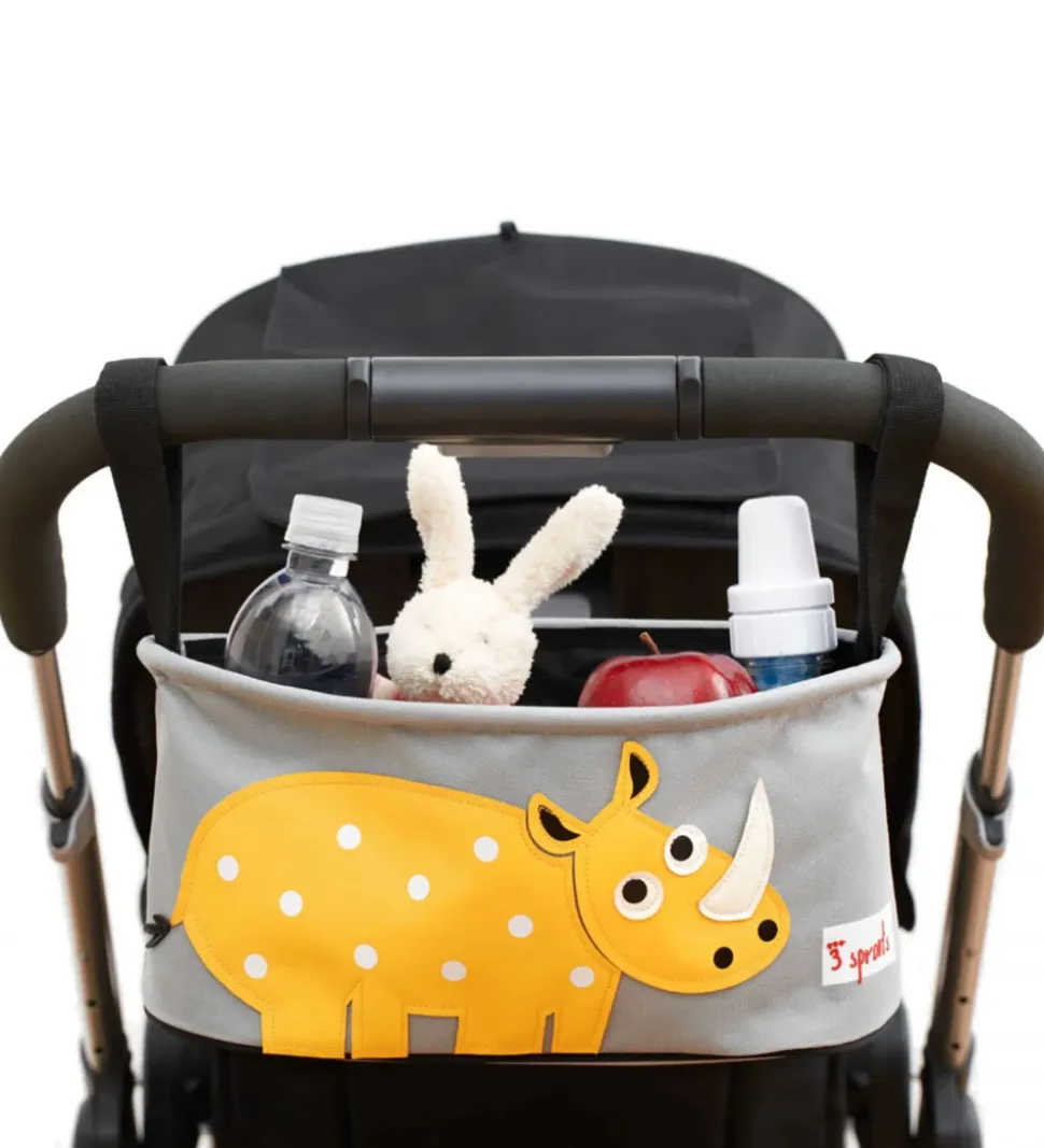 Smart 3 Sprouts barnevognstaske i grå med et stort motiv af et gult næsehorn.