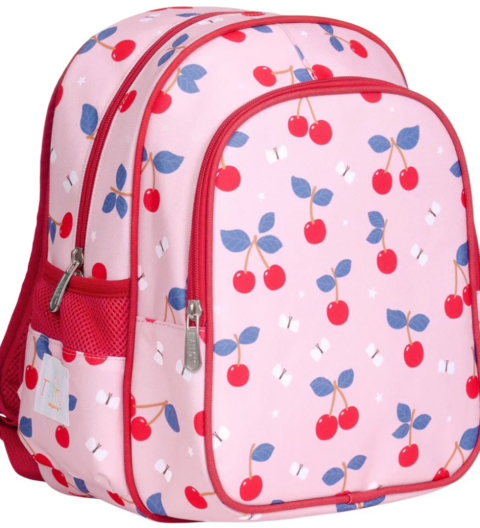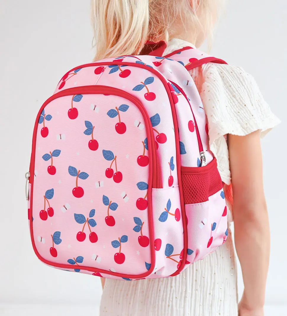 Skøn A Little Lovely Company børnehavetaske i rosa med et flot kirsebærprint.