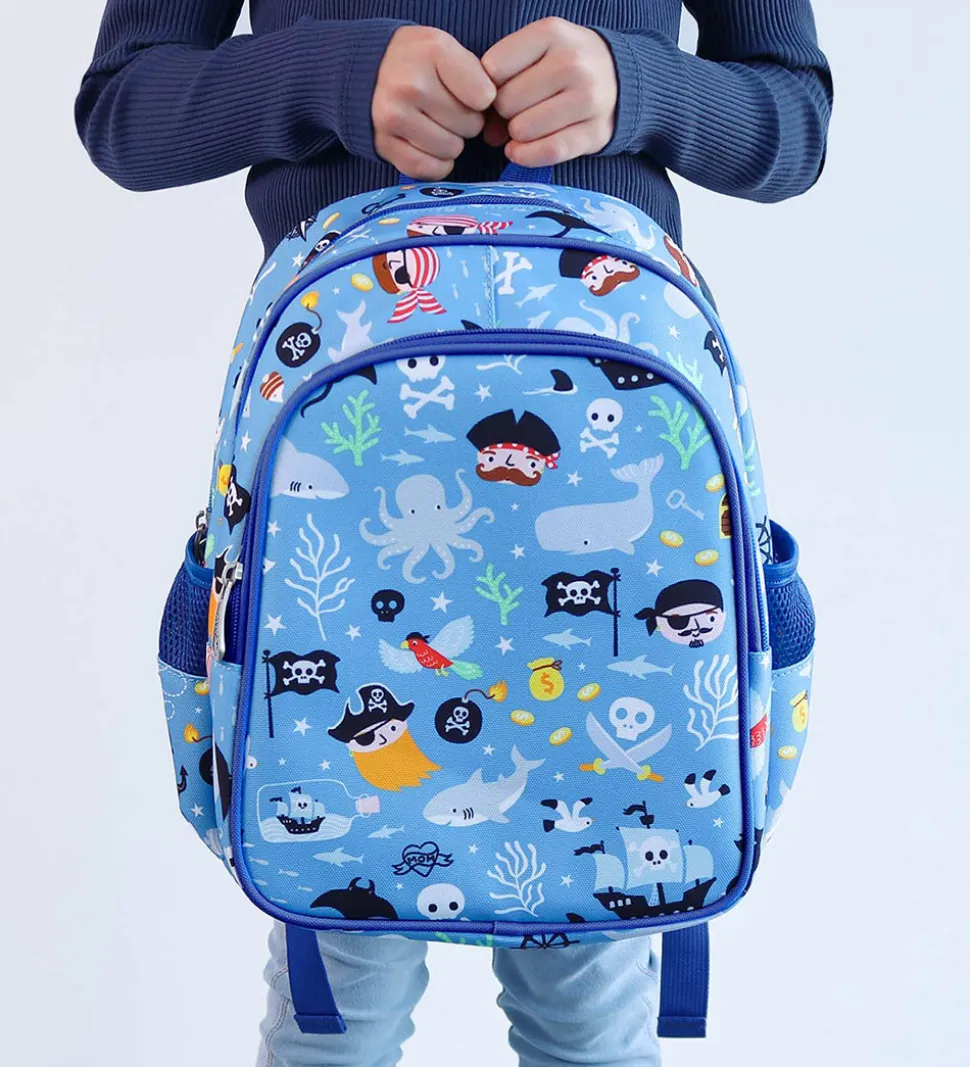Skøn A Little Lovely Company børnehavetaske i blå med et sejt piratprint.