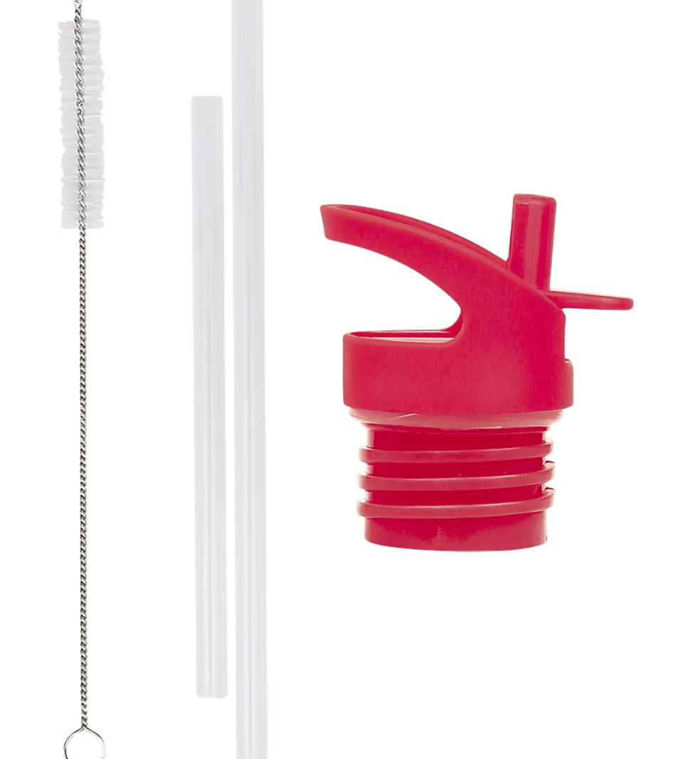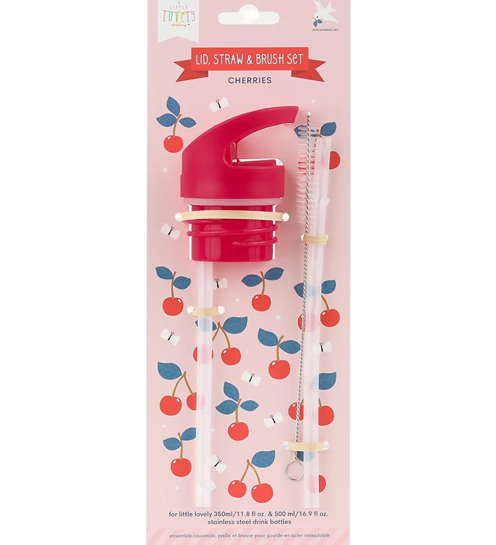 A Little Lovely Company drikkedunksættet passer til mærkets egne drikkedunke af rustfrit stål. Låget har en smart hank samt en sportstud, som kan foldes op og ned. Låget lukker tæt takket være en praktisk silikonekant. Rengøringsbørsten er nem at bruge på de medfølgende sugerør.