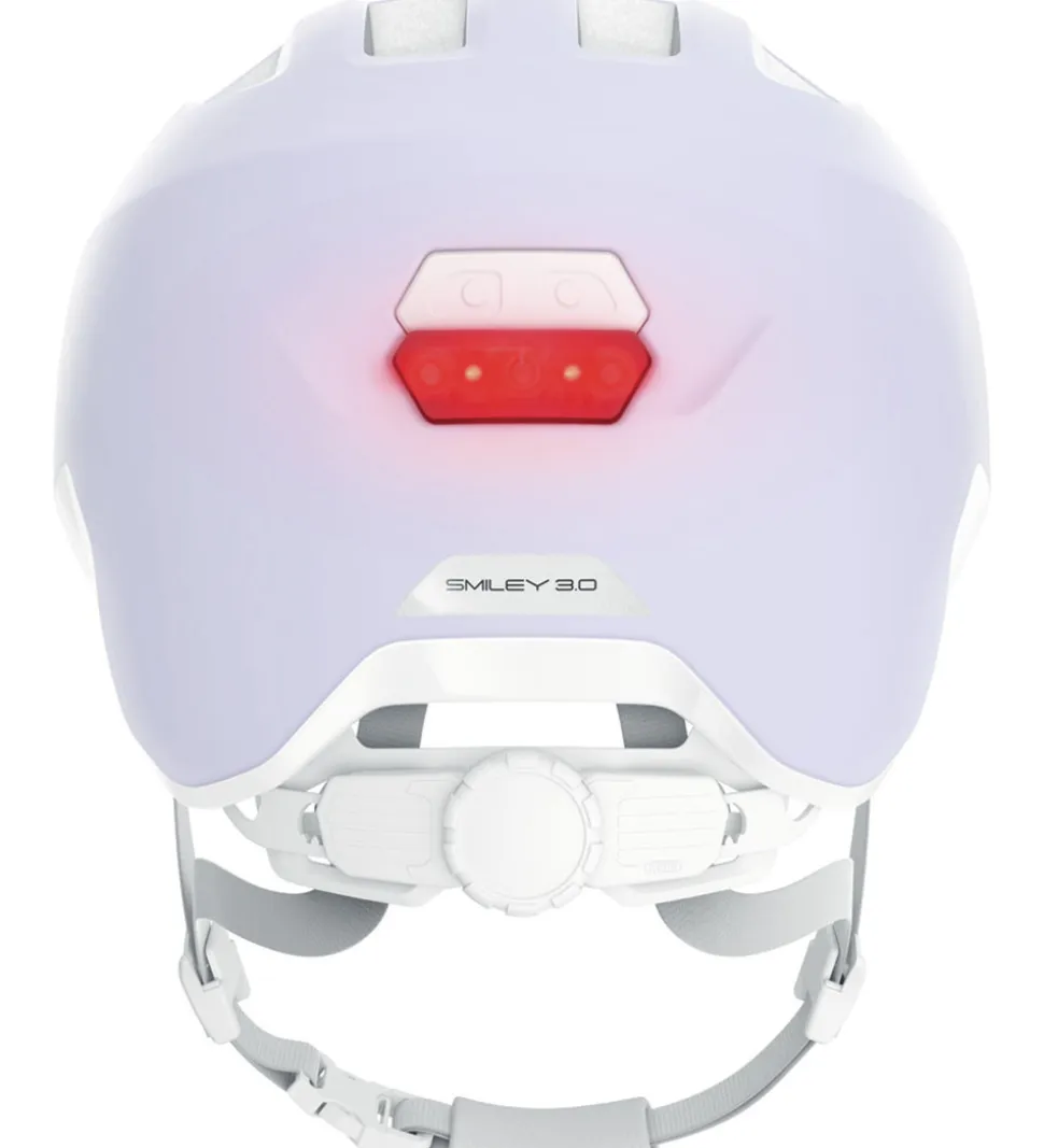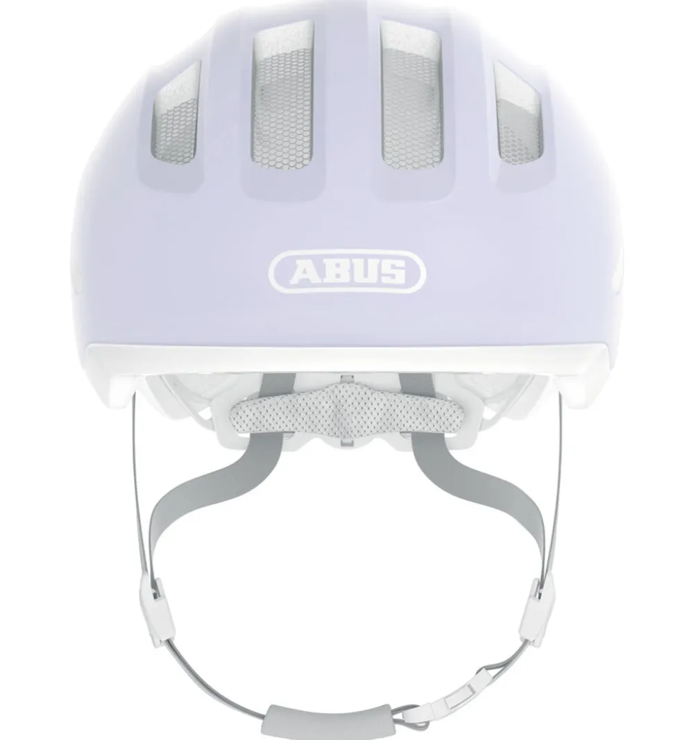 Smart Abus cykelhjelm i mat, lys lilla med hvide detaljer.