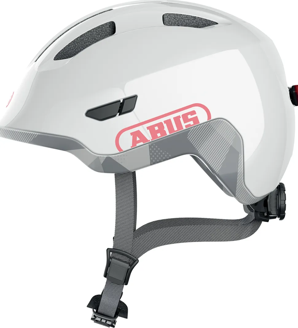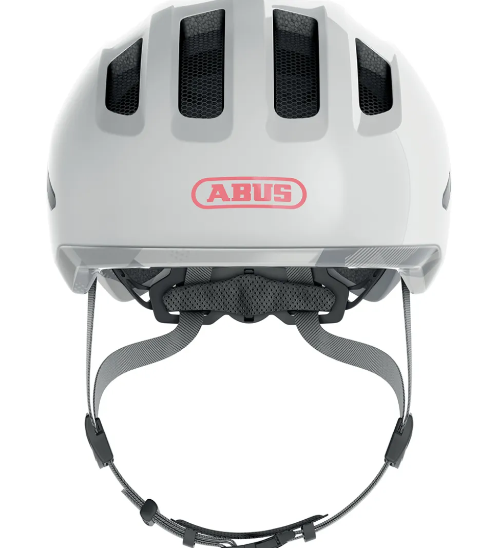 Abus cykelhjelmen er perfekt til de mindste børn, når de f.eks. kører på løbecykel eller på deres første rigtige cykel. Hjelmen tilpasses barnets hovedet ved at dreje på et hjul bagpå, og den lukkes under hagen med justerbare remme med et klikspænde.