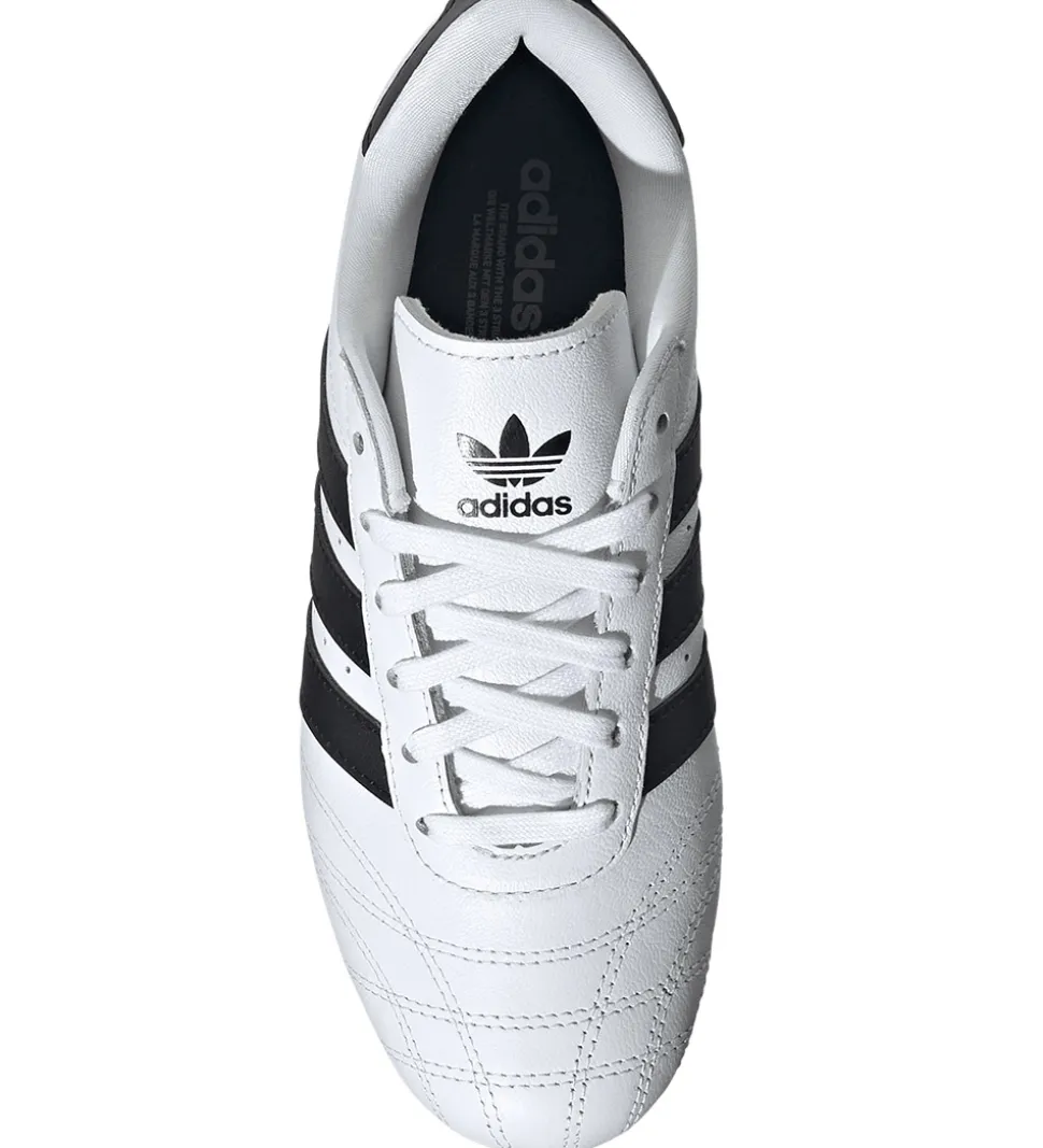 Seje adidas Originals indendørssko i hvidt imiteret skind og skind med sorte logostriber på siderne samt logo på pløsen og hælen.