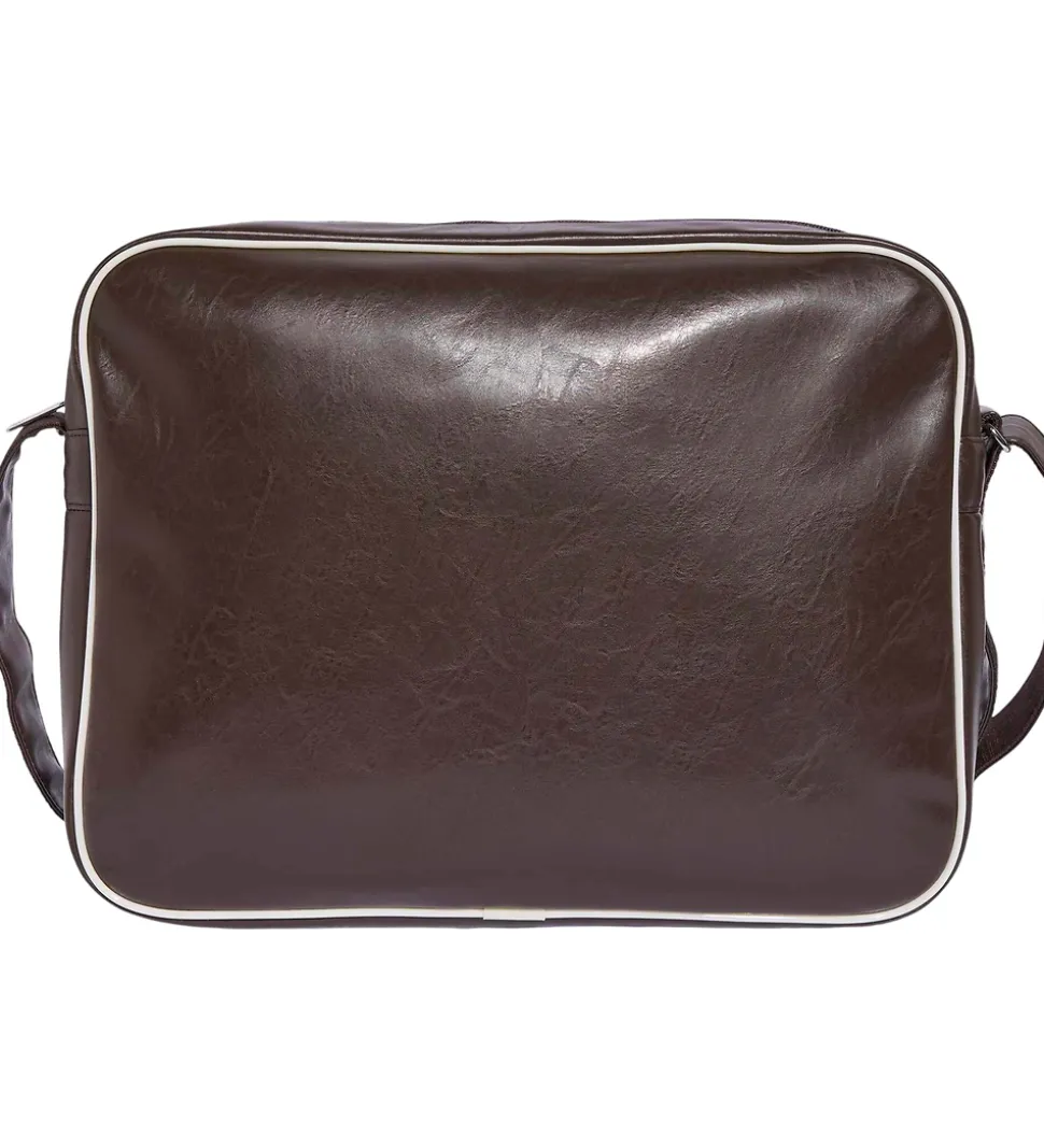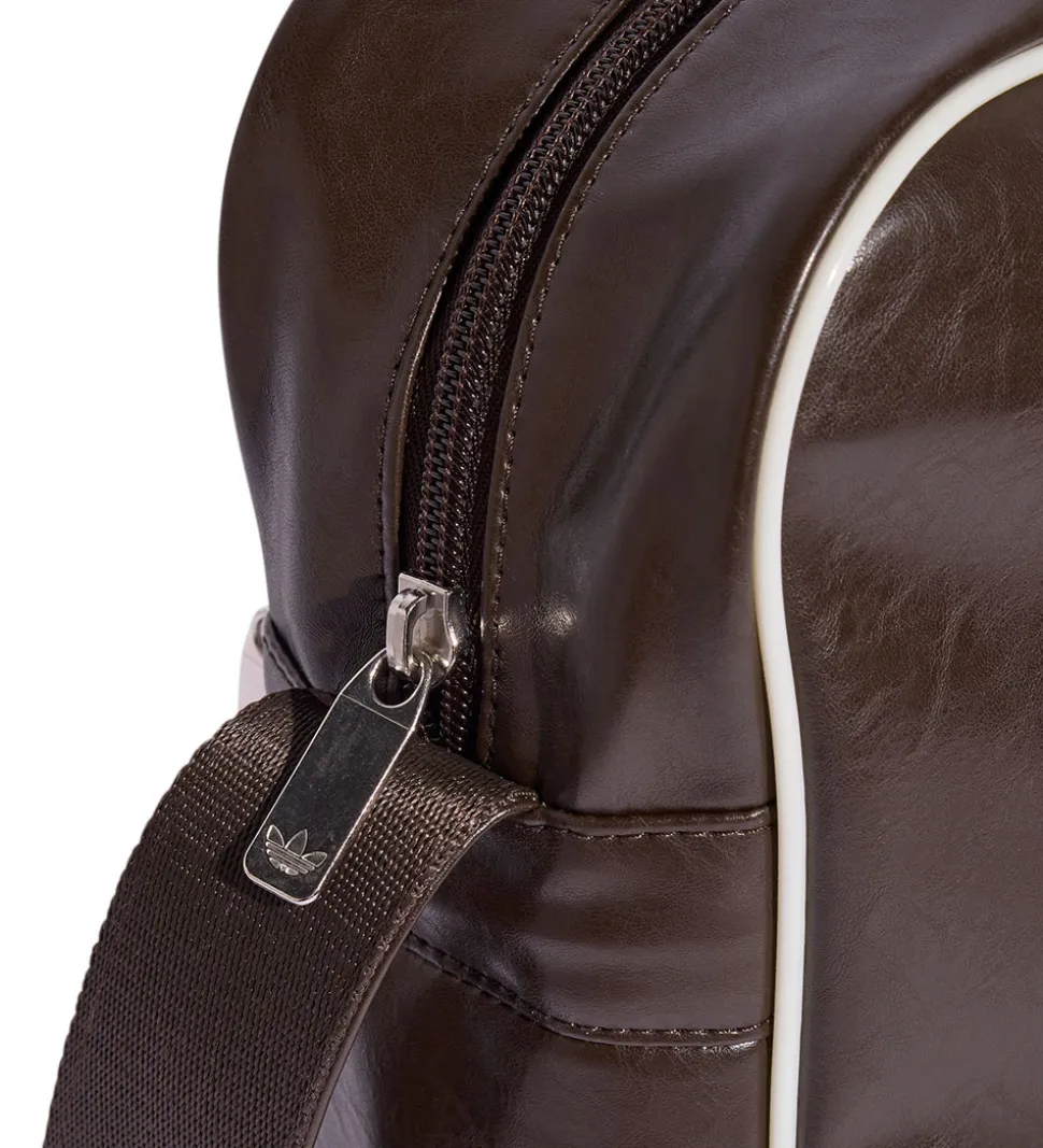 Smart adidas Originals taske af imiteret læder i mørkebrun, med hvide detaljer og et hvidt logoprint.