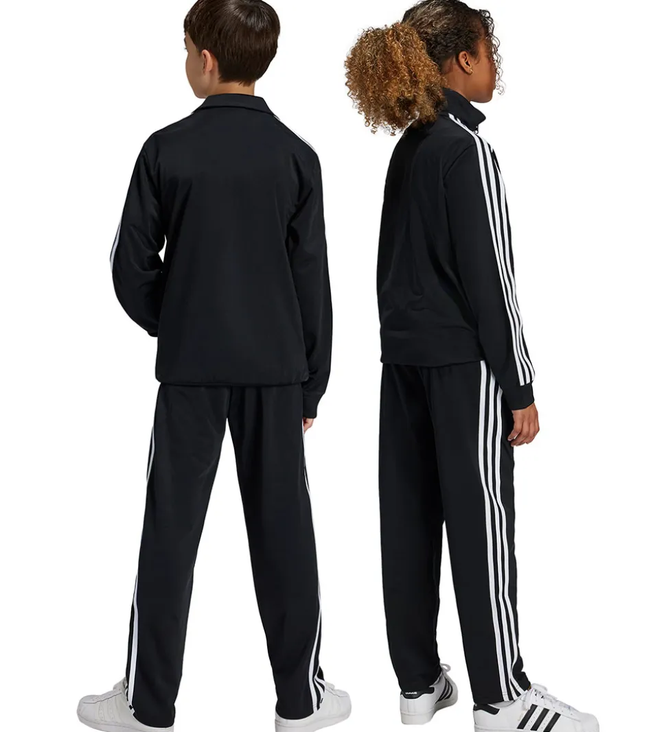 Flotte adidas Originals træningsbusker i sort, og ned ad buksebenene er der tre hvide logostriber.