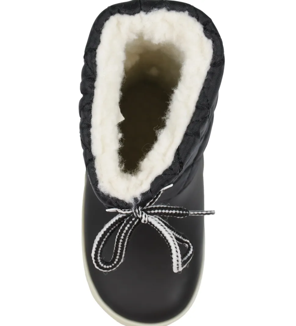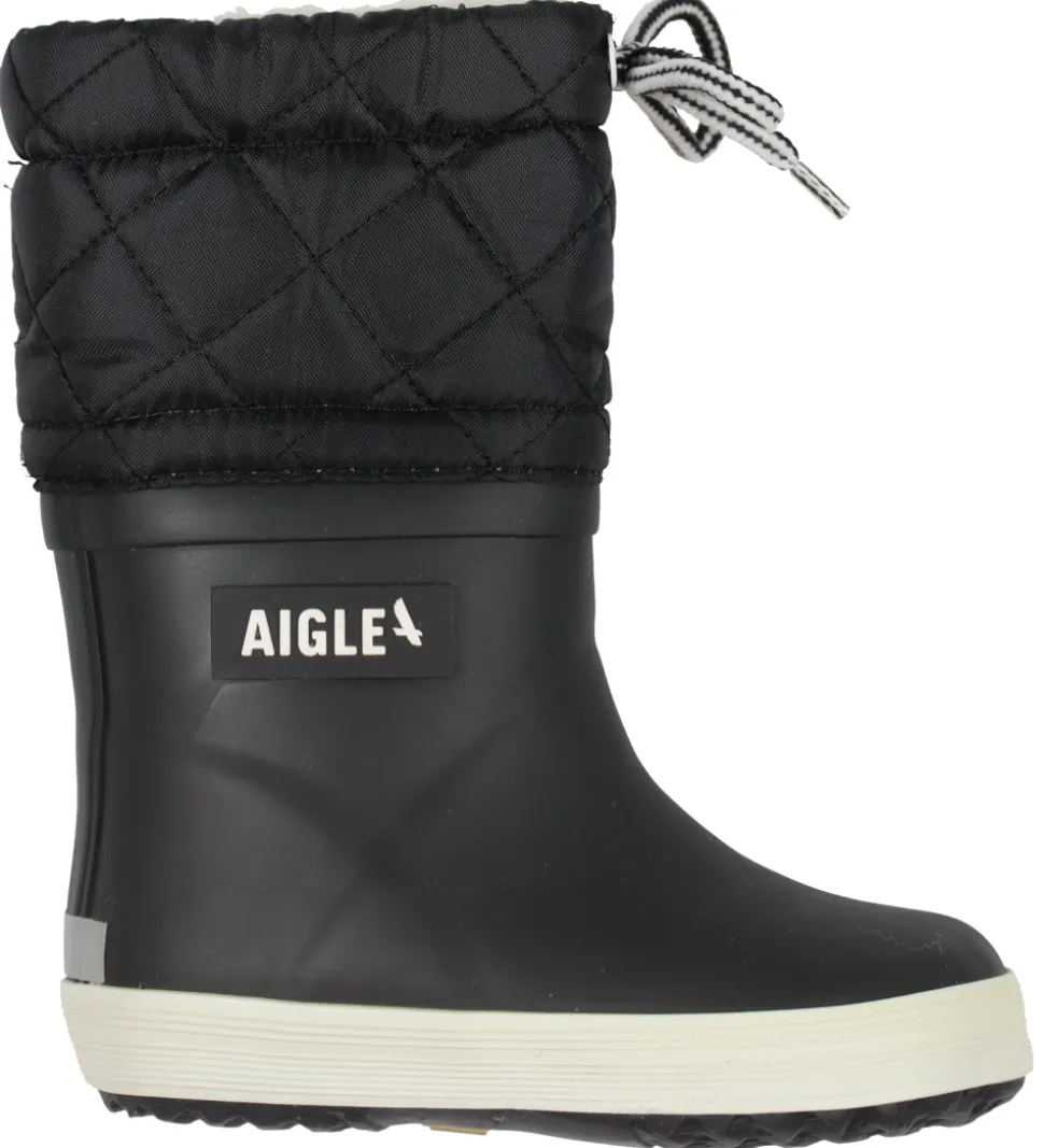 Lækre Aigle termostøvler i Giboulee-modellen i sort med en cremefarvet stribe langs sålerne.