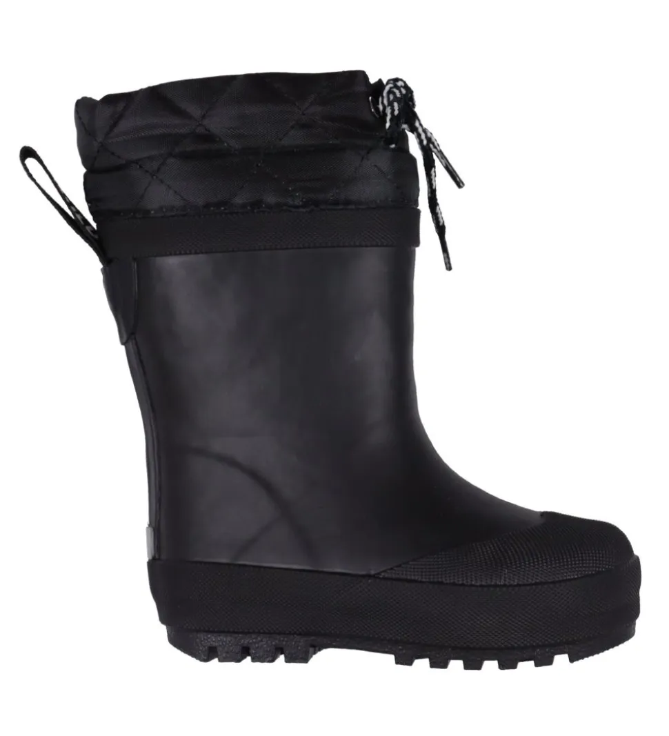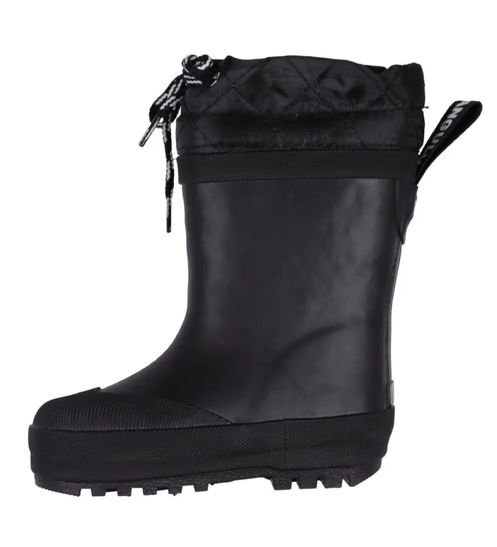 Flotte Angulus termostøvler i ensartet sort. På termostøvlernes praktiske hælstrop står der “ANGULUS” med hvid skrift.