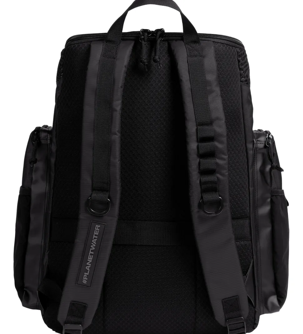 Rygsækken har en vatteret ryg med åndbart mesh på bagsiden, og den bæres i brede justerbare skulderremme med åndbart mesh på bagsiden.
