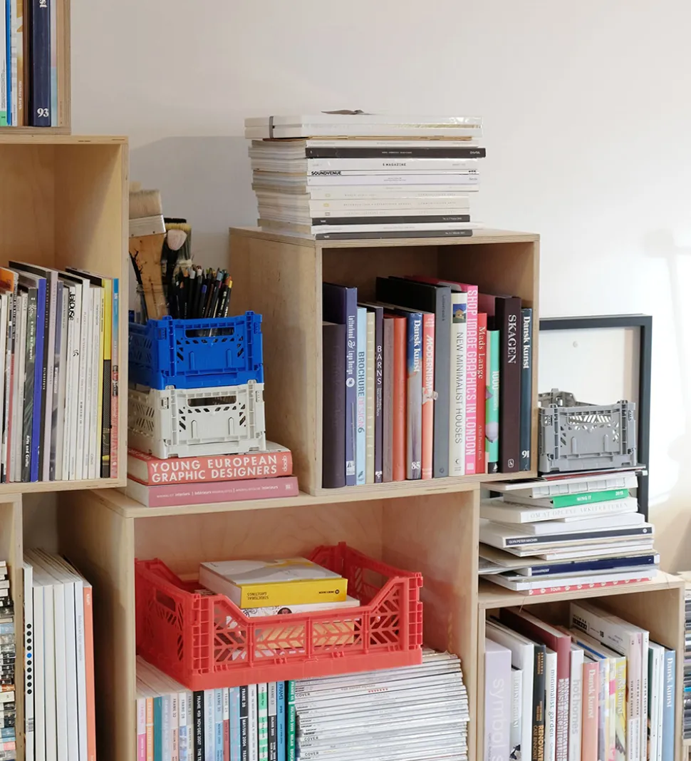 Cool Aykasa foldekasse i ensfarvet lys støvet blå med smarte huller på alle sider.