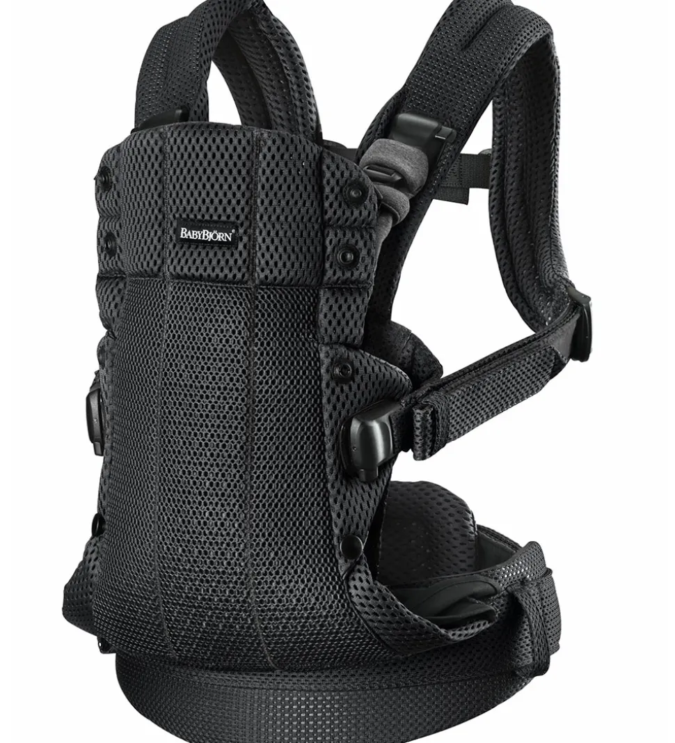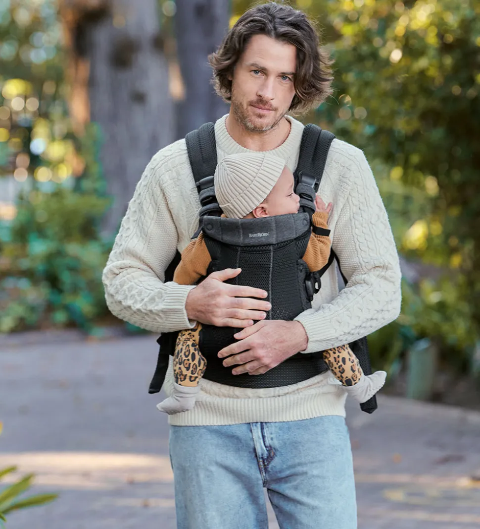 Praktisk BabyBjörn bæresele i meleret sort mesh.