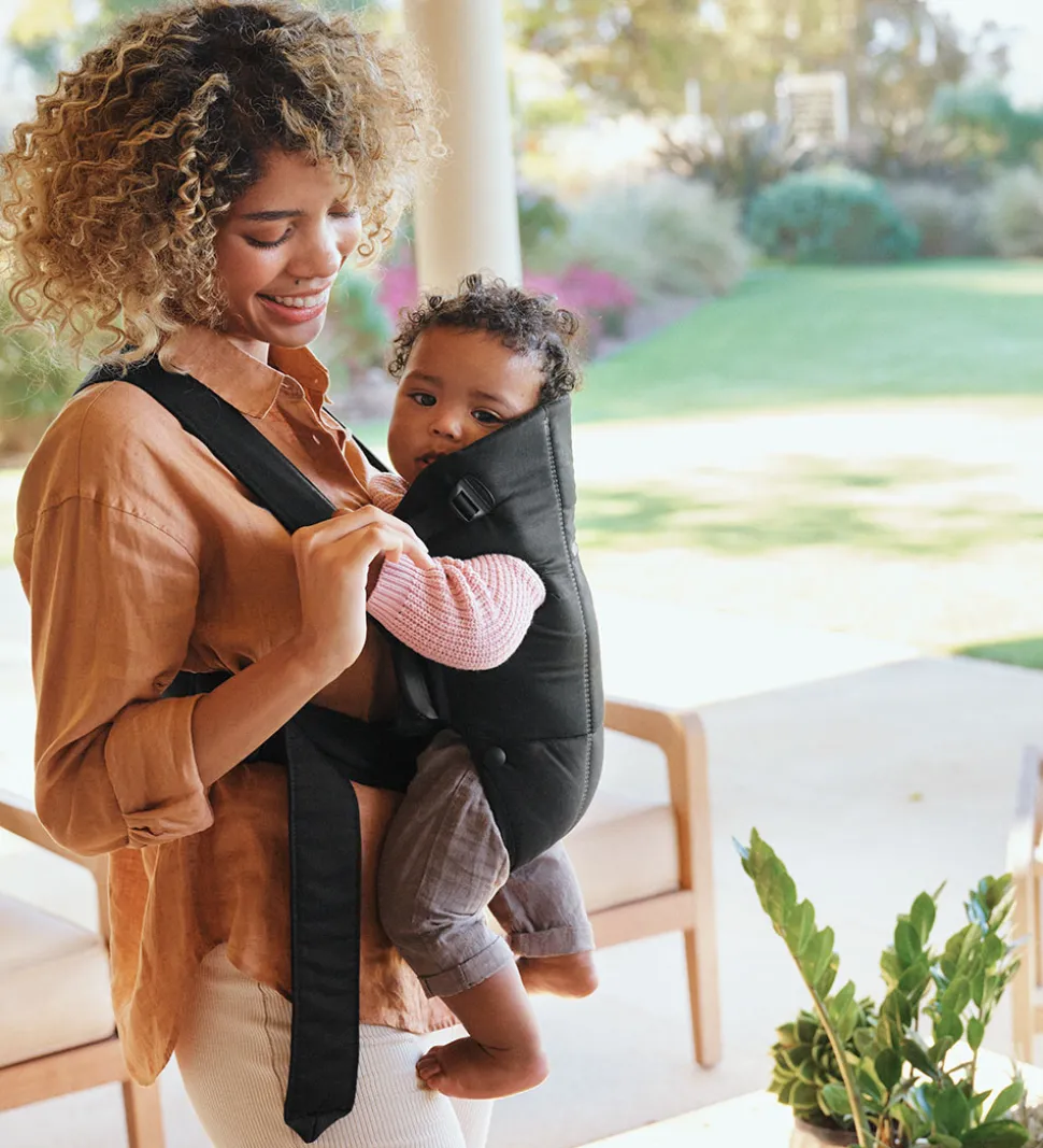 Lækker BabyBjörn bæresele i sort med vævet struktur.
