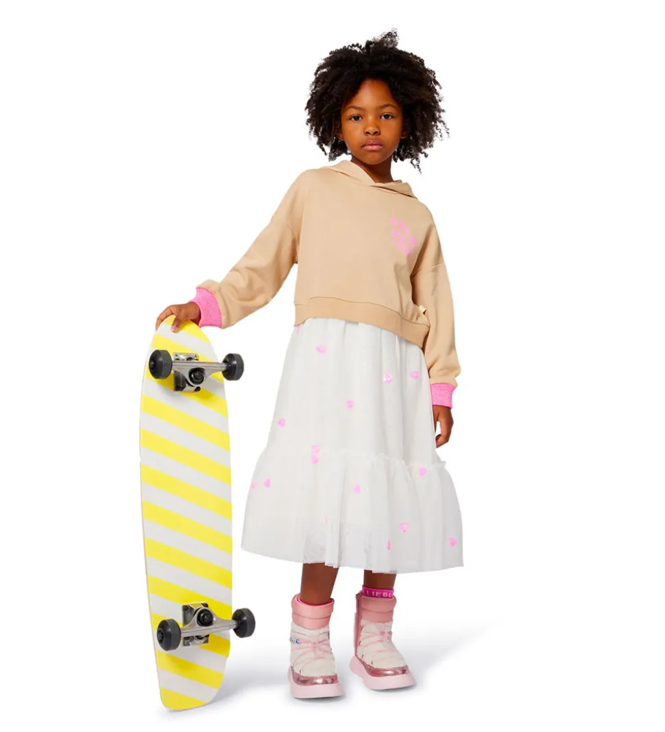Billieblush vinterstøvlerne har et mellemhøjt skaft, og lukkes på indersiden med en lynlås. Fortil er der elastiksnører, som kan justeres med et spænde. Bagpå er der en praktisk strop. Vinterstøvlerne har god polstring med rosa tekstil indvendigt. Ydersålerne er letvægtige og fleksible med et bølget mønster under bunden, som giver et godt fodfæste.