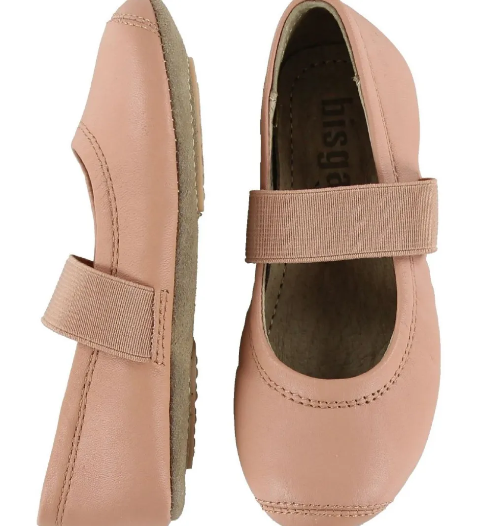 Hjemmeskoene er ensfarvet rosa med et elastikbånd henover vristen.