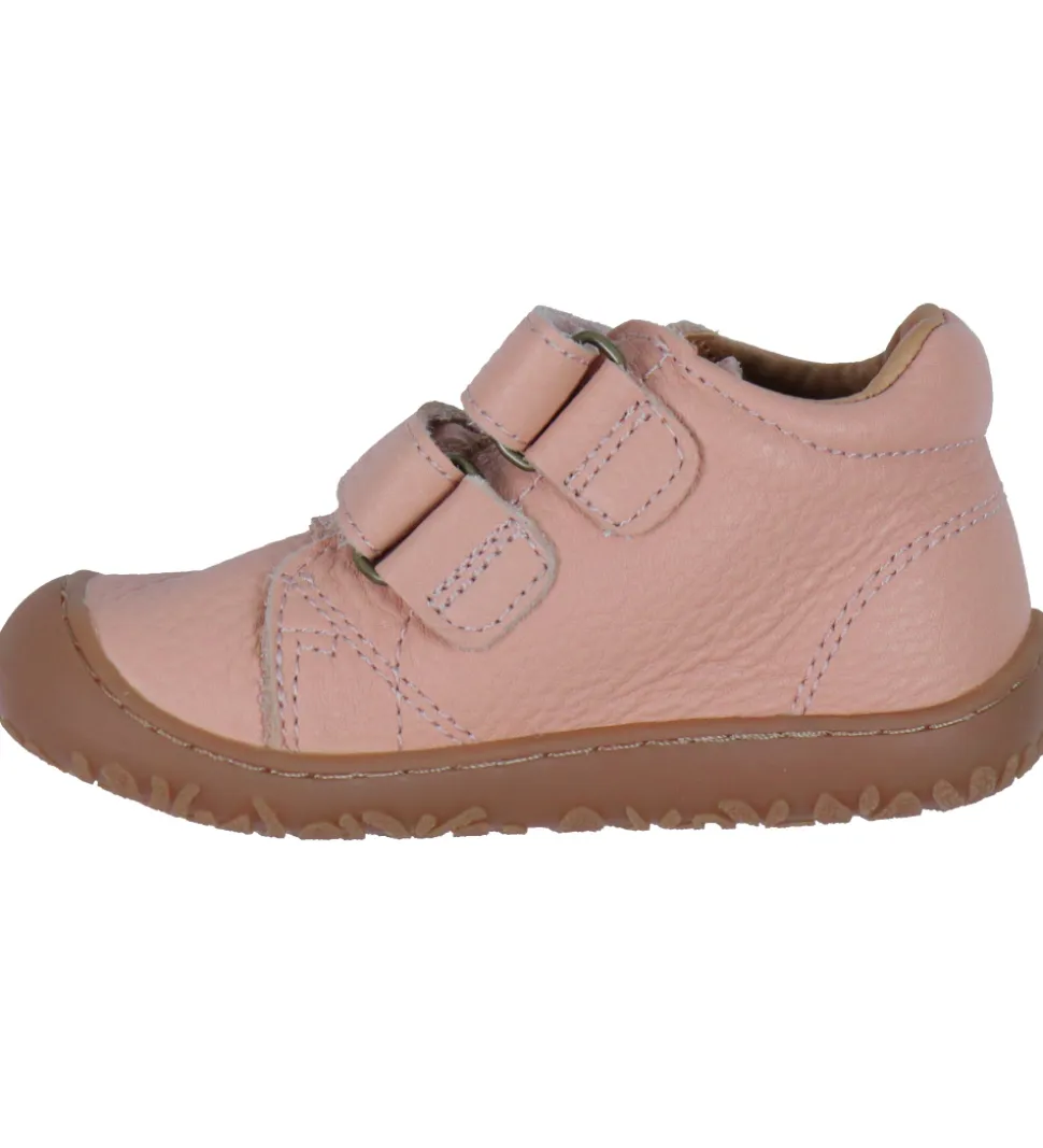 Søde Bisgaard begyndersko i rosa skind og på ydersiden er en stjerne præget ind i skindet.