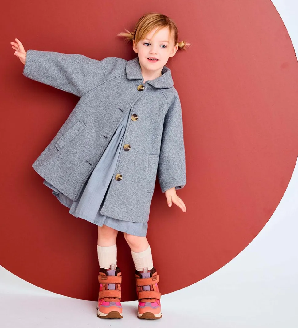 Lækre Bisgaard støvler i skind, ruskind og tekstil i røde nuancer, lilla og pink. Støvlerne har refleksdetaljer bagpå.