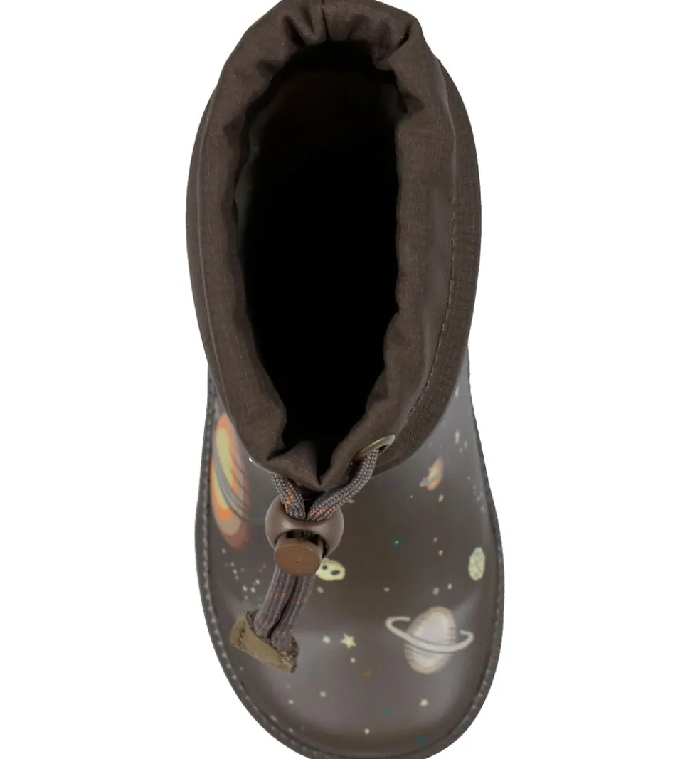 Seje Bisgaard termostøvler i brun med print af planeter og stjerner.