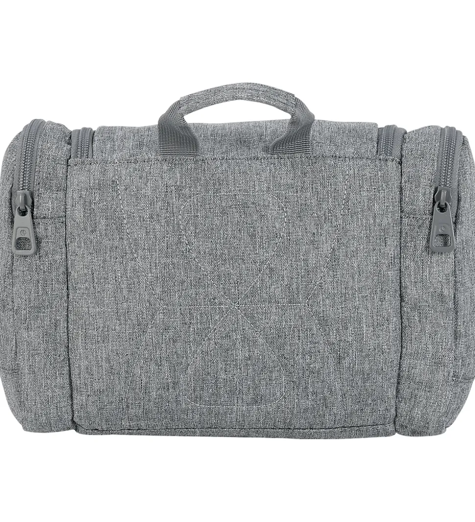 I det stor rum er der en meshlomme med lynlås, en lynlåslommer og tre elastikstropper, der hjælper med at organisere toilettaskens indhold. Toilettasken har også to store lynlås-lommer i siderne, og en praktisk hank i toppen, så den er let at holde.