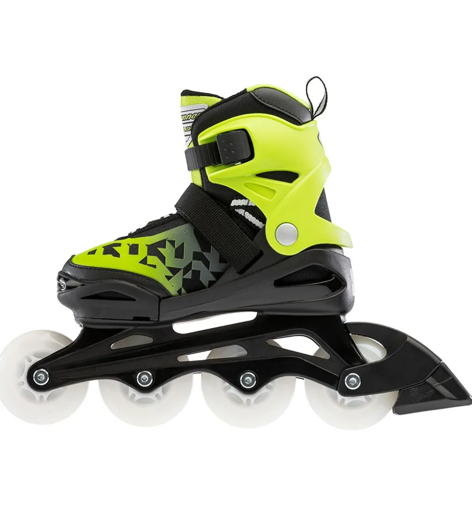 Søde Bladerunner rulleskøjter i sort og grøn med LED lys i hjulene, så du kan holde øje med dit barn, selv hvis de ruller i mørke.