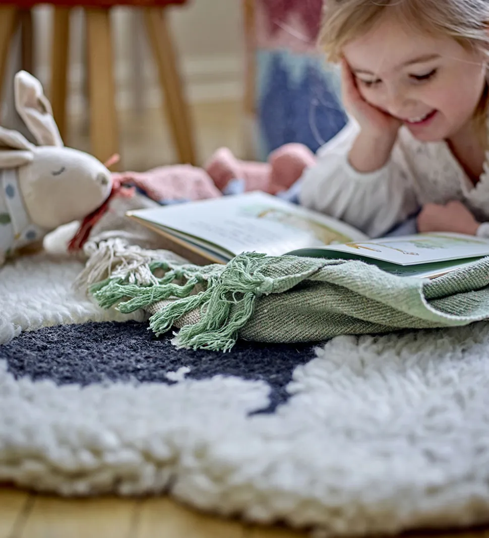 Bloomingville tæppet har en blød tekstur og fine detaljer, hvilket gør det til et interessant og hyggeligt element i ethvert børneværelse.