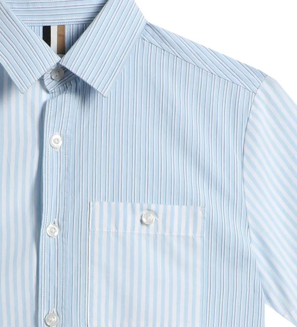 Smart BOSS skjorte med to forskellige stribede mønstre i hvid og lyseblå samt navy.