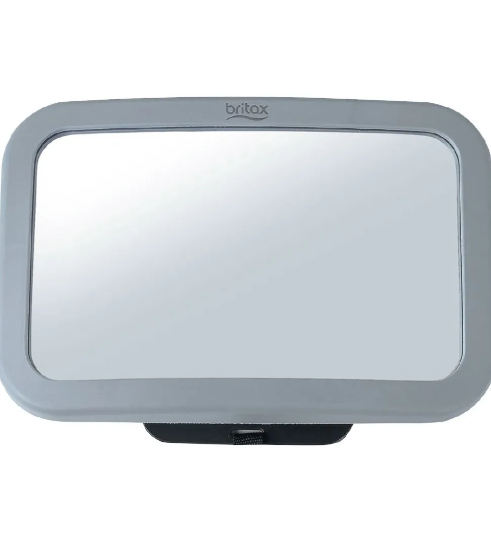 Praktisk Britax Römer bagsædespejl med en grå kant og mærkets navn i toppen.