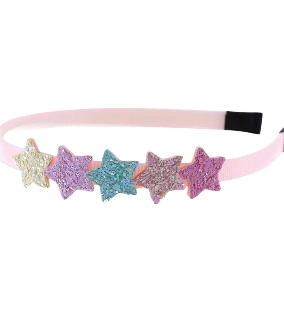Elegant By Stær hårbøjle i rosa med glitrende stjerner i forskellige farver på fronten.
